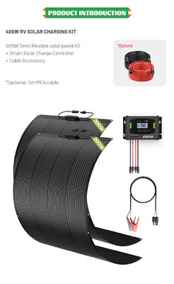 100Wのソーラーパネルキット 400Wのソーラーパネルキット MPPT充電コントローラ付きの 400Wのソーラーパネルキットこれらのキットは,異なる電力需要と予算に対応します単結晶太陽光パネルは高効率で 理想的な気象条件でも 最大限のエネルギーを吸収します設置は柔軟で便利ですRVの屋根にパネルを最適に配置できます